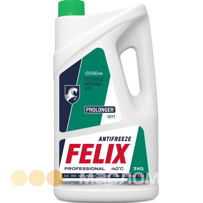Антифриз FELIX® PROLONGER® представляет собой жидкость охлаждающую низкозамерзающую на основе этиленгликоля и специально очищенной воды, не содержащую аминов, фосфатов и боратов. Разработан по гибридной технологии, содержит в себе набор силикатных присадок.
