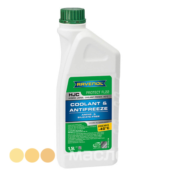 RAVENOL HJC Protect FL22 Premix -40°C – готовый антифриз зеленого цвета на основе этиленгликоля, не содержит силикаты и амины. Обеспечивает долговременную (до 3 лет) антикоррозионную защиту алюминиевого двигателя как зимой, так и летом. Не опасен для окружающей среды.