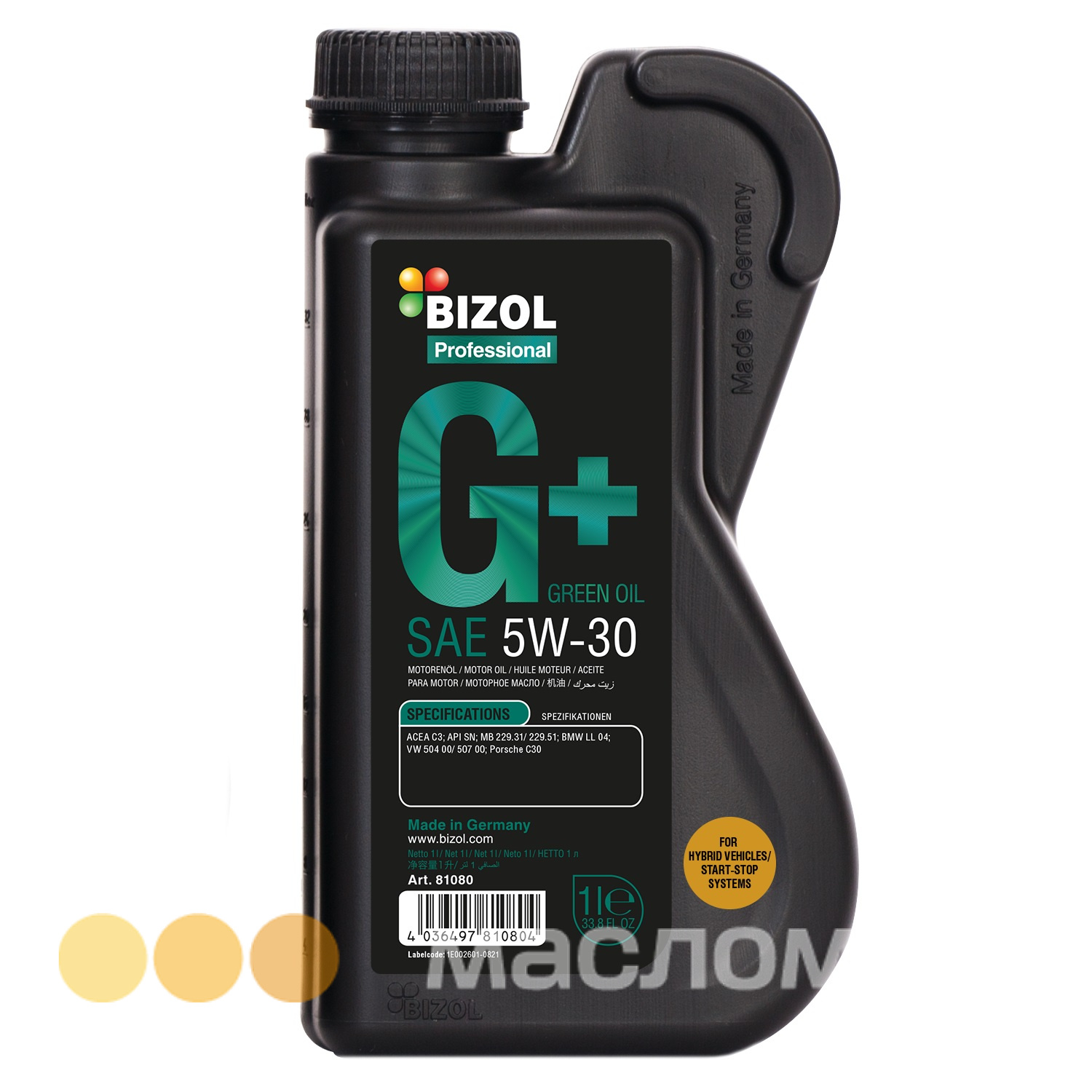 Чтобы удовлетворить потребности в моторном масле для автомобилей с гибридными двигателями или с системами «старт-стоп», инженеры компании BIZOL разработали новые технологии производства моторного масла. Технологии COMB Lubriboost и 2D Surface Gel обеспечивают лучшую смазывающую способность и перманентную масляную пленку на всех двигателя. Технология OxShield обеспечивает повышенную стойкость к окислению и защиту двигателя во время продолжительного периода его работы между заменами масла. Наночастицы материала с высокой поперечной силой представляют собой так называемую технологию W-guard, обеспечивающую защиту всех агрегатов двигателя, которые наиболее подвержены износу. Масло BIZOL Green Oil+ снижает риск эффекта раннего зажигания на низких оборотах (LSPI).